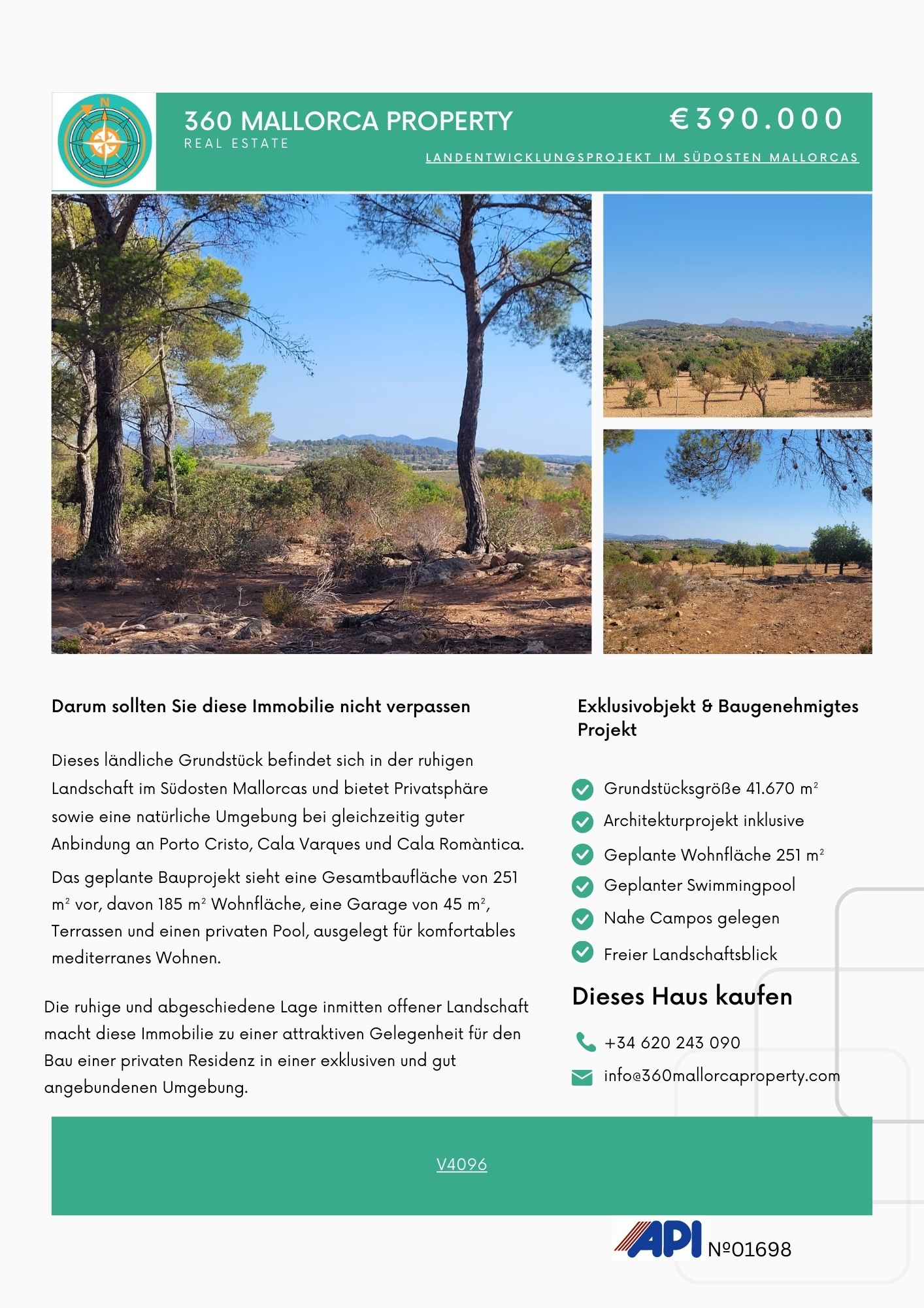 Für weitere Informationen, zögern Sie nicht, sich mit einem unserer Teammitglieder hier bei 360 Mallorca Property in Verbindung zu setzen.