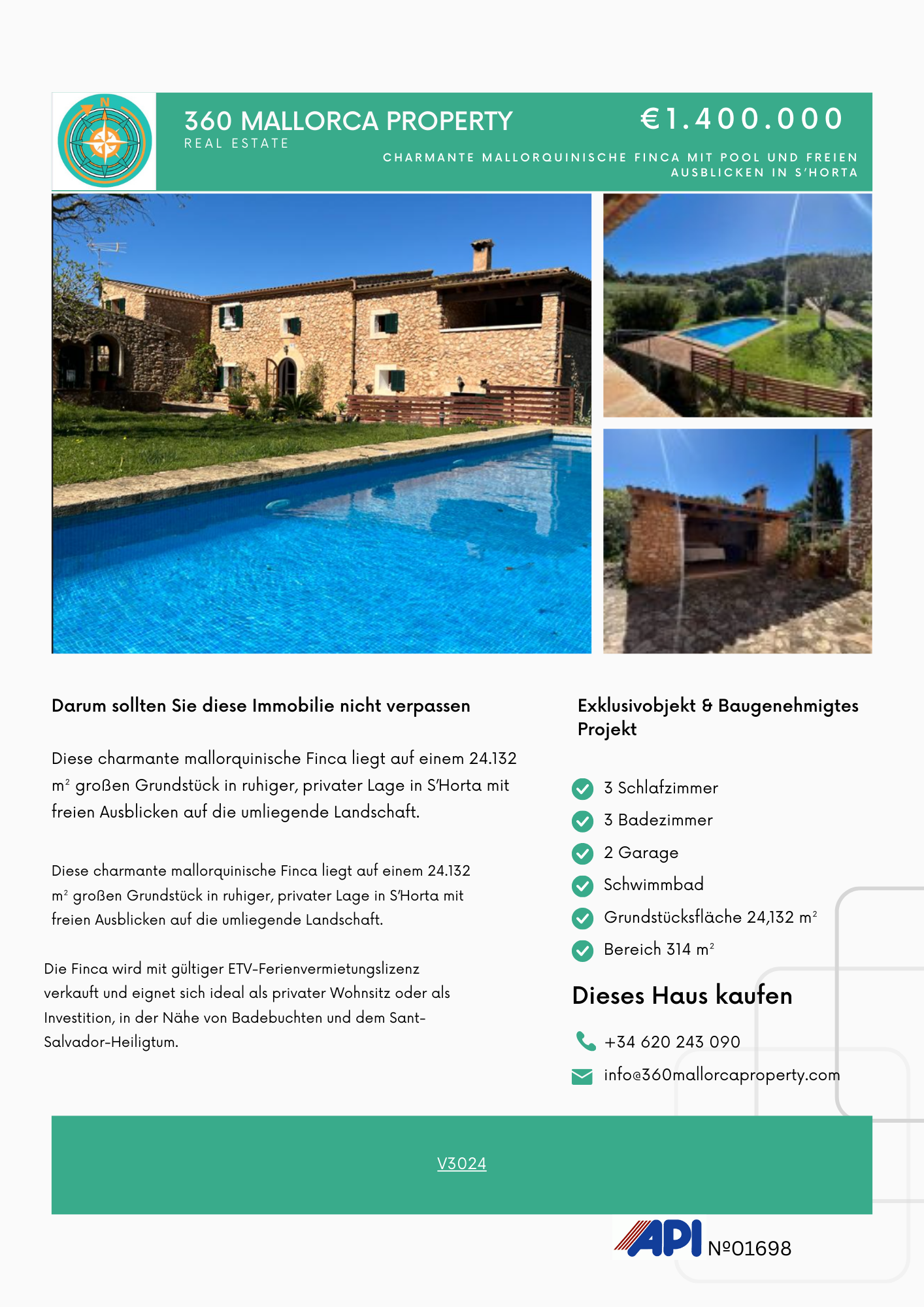 Für weitere Informationen oder um eine Besichtigung zu vereinbaren, kontaktieren Sie uns bei 360 Mallorca Property.