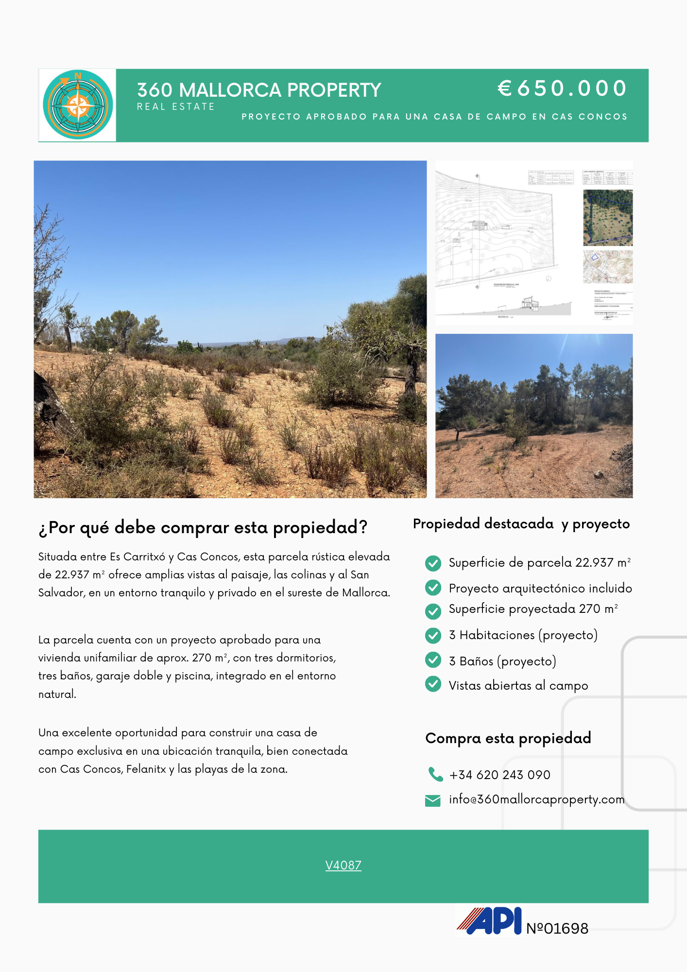 Una excelente oportunidad para desarrollar una residencia de campo exclusiva, combinando tranquilidad, vistas y cercanía a Cas Concos, Felanitx y las playas más bonitas de la isla, ideal tanto como vivienda privada como inversión a largo plazo.