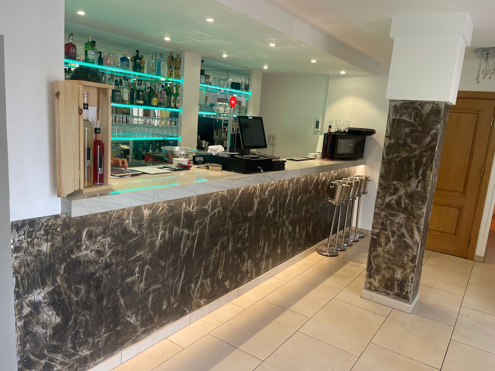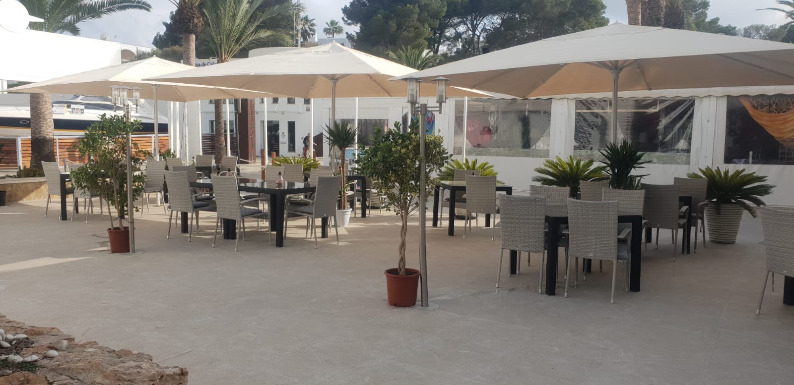 El restaurante actual proporciona aprox. 50 plazas en el interior y otras 60 en la terraza cubierta del exterior, que puede ampliarse fácilmente hasta 100 plazas.