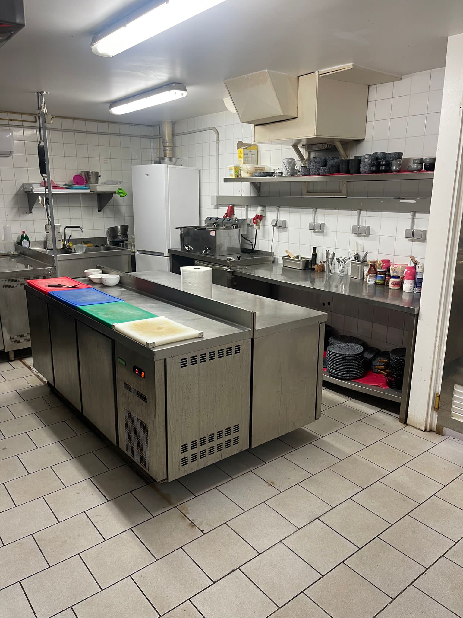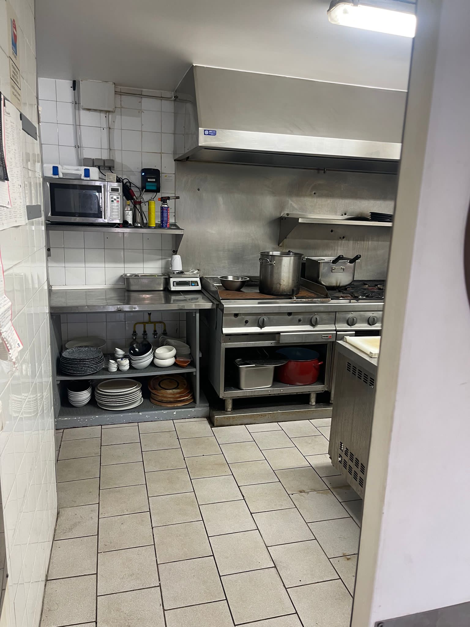 El restaurante propiamente dicho tiene 2 salas separadas, y cuenta con un gran almacén, una oficina, una zona para el personal con ducha y dos aseos.