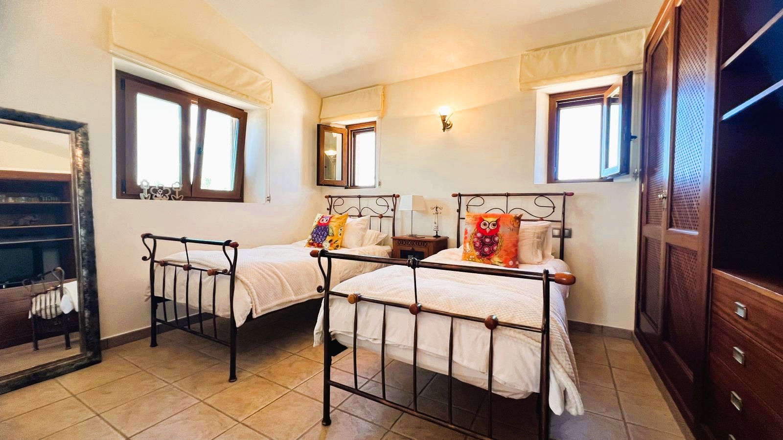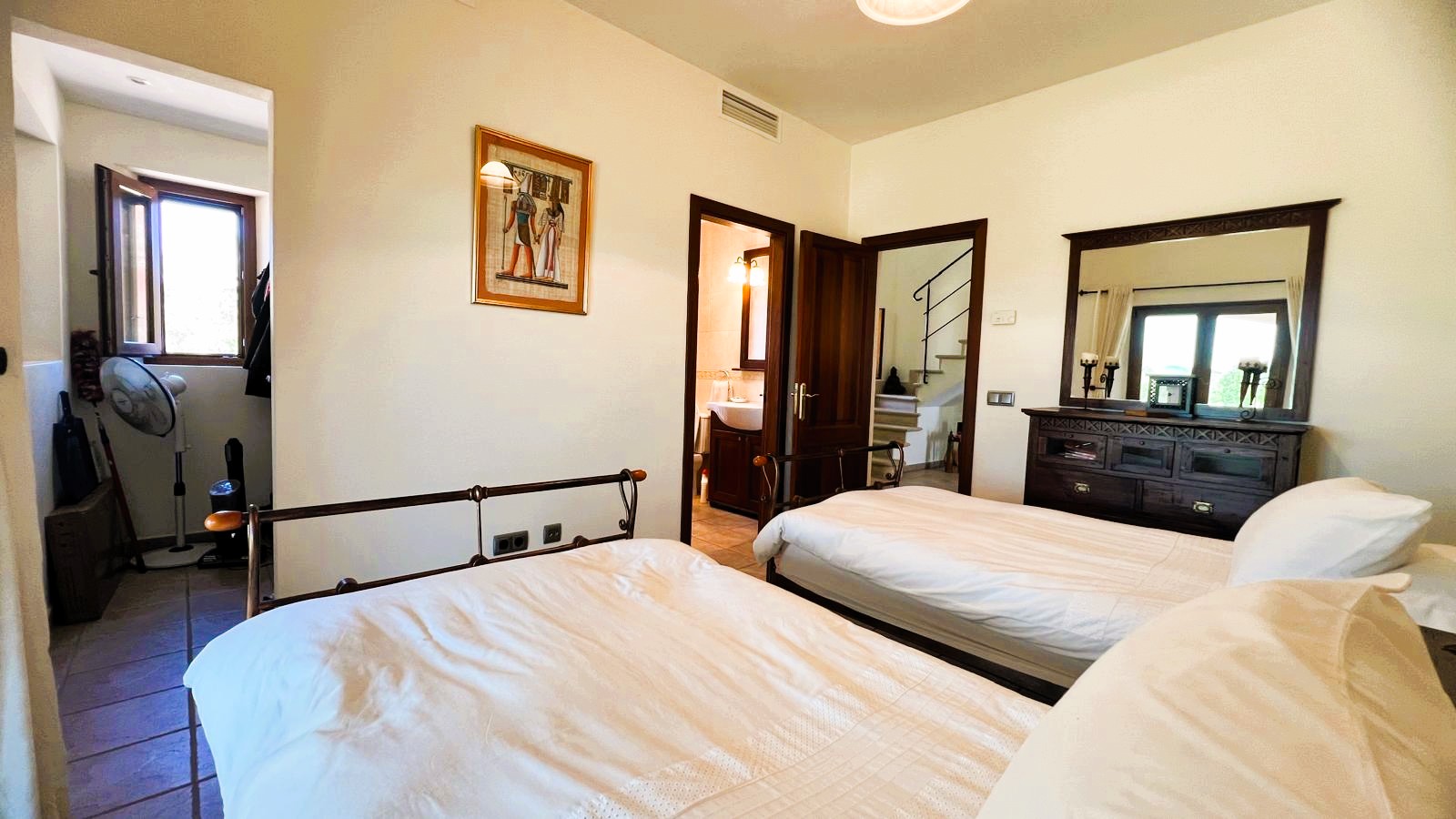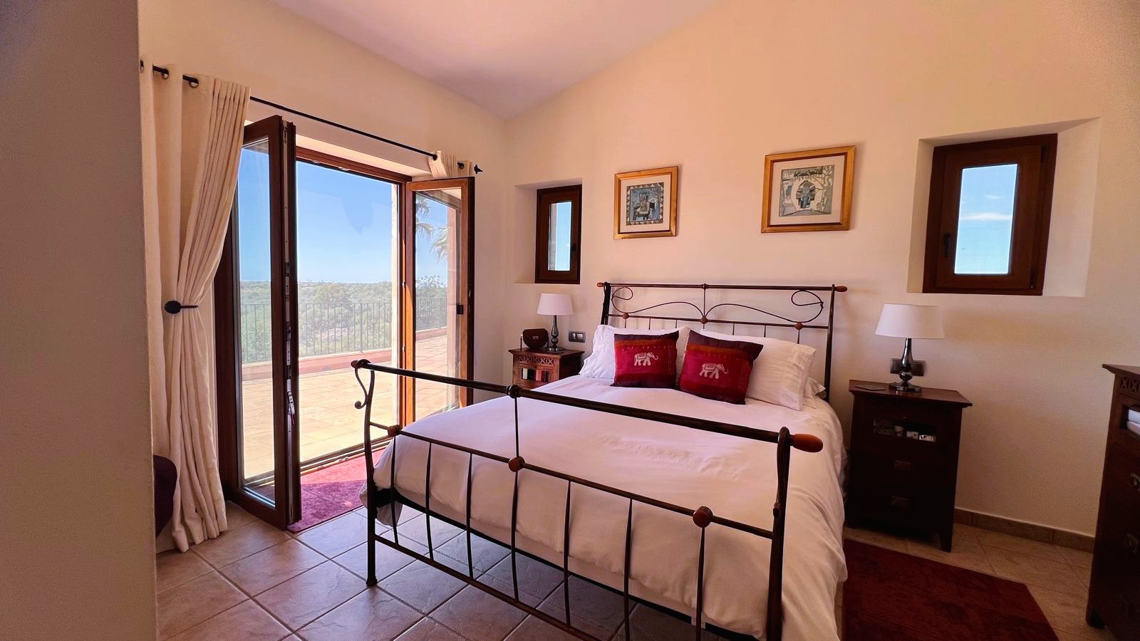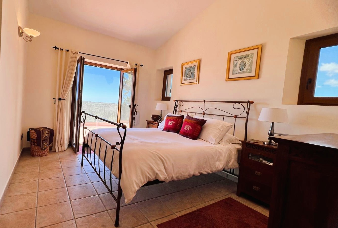 On the upper floor, the first floor offers three additional bedrooms, each with its own en suite bathroom and custom solid wood wardrobes. Two of the bedrooms have direct access to a large terrace, from where you can enjoy stunning views of the countryside and the sea in its most natural state.