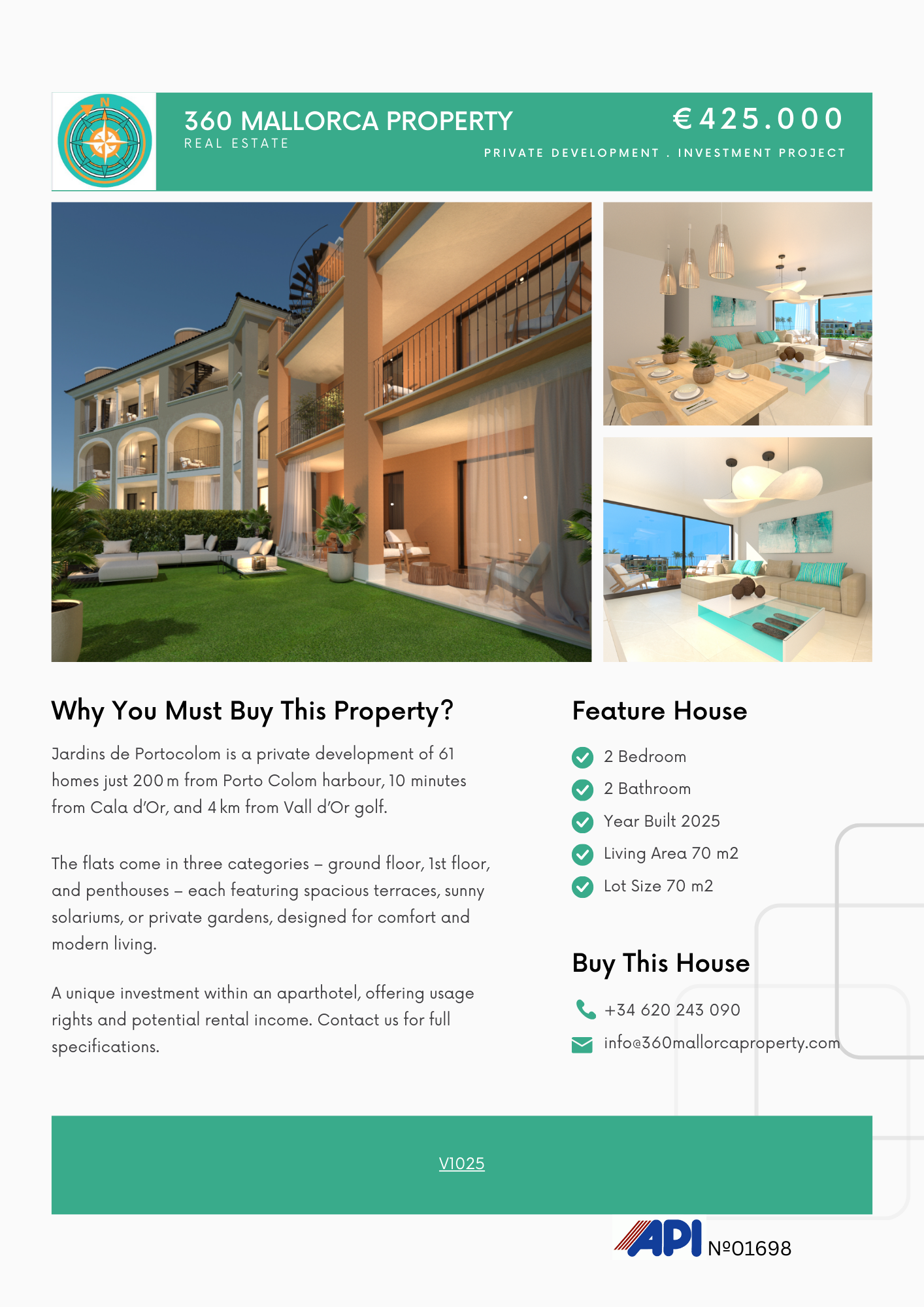 Jardins de Portocolom is a new private development of 61 homes built to provide maximum comfort and energy efficiency. The flats enjoy a privileged location: just 200 metres from the natural harbour of Porto Colom, a 10-minute drive from the popular tourist destination of Cala d’Or and a 4-kilometre drive from the Vall d’Or golf course.
